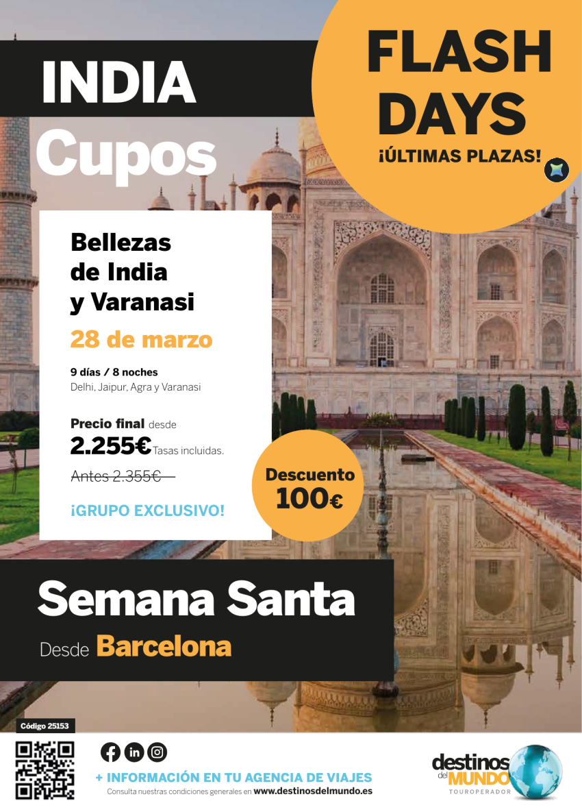 🛶🇮🇳💫Bellezas de India y Varanasi SEMANA SANTA desde Barcelona 9 d / 8 n salida: 28 de marzo desde 2.255€💫