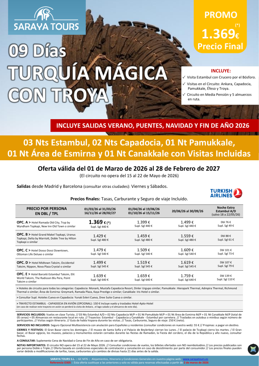 Turquía Mágica con Troya 09 días: Estambul + Circuito + Troya con Visitas Incluidas hasta Feb27