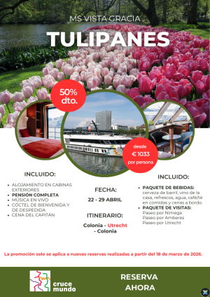 Países Bajos: Tulipanes en Flor - 50% de descuento. Crucero de 8 días a bordo de MS VistaGracia